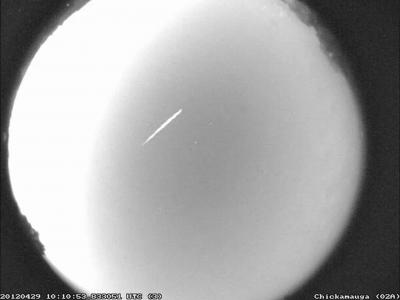 这张由美国国家航空航天局提供的照片显示,2012年4月29日,一颗宝瓶座η的流星在乔...