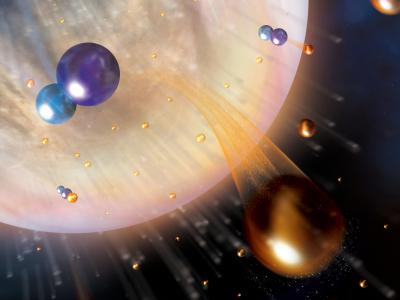 艺术表现恒星北落师门环绕盘中两个行星相撞的过程。图片来源:托马斯·穆勒(MPIA)...