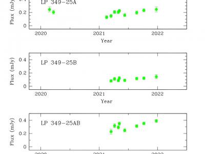 上图显示了主星LP 349−25A的积分通量密度。中间的面板显示了相同的内容,但适...