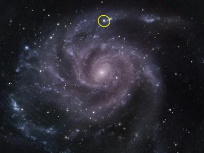Pinwheel星系,超新星SN 2023ixf的位置(圈出)(图片来源:天体物理中心|哈佛和史...
