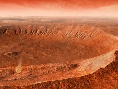 火星上一个撞击坑的插图。一种名为“泛精子”的边缘理论表明,流星,就像形成这个陨...