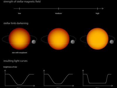 低磁场强度的恒星比强磁场的恒星表现出更明显的边缘变暗。这会影响灯光曲线的形状。...