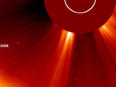 这颗名为SOHO-5008的新彗星在日食结束数小时后被太阳摧毁。(图片来源:ESA/NASA/S...