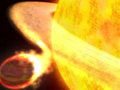 一个恒星吞噬一颗行星的插图。(图片来源:NASA/ESA/G.Bacon)(蜘蛛网eeook.com)...