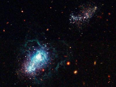 蓝色致密矮星系I Zwicky 18。致谢:美国国家航空航天局、欧空局、伊佐托夫(联合王国...