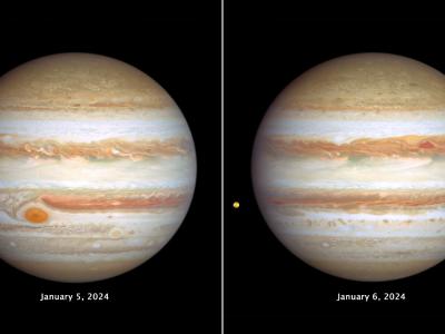 美国国家航空航天局的哈勃太空望远镜于2024年1月5日至6日拍摄了木星的两侧图像。图...