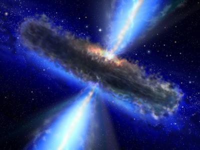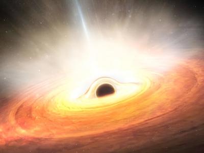 一幅超大质量黑洞的艺术家插图(SMBH)。遥远星系中的SMBH驱逐了其吸积盘中的所有物...