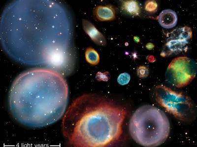 我们团队制作的一幅现已成为标志性的拼贴画,展示了22幅著名的PNe作品,按照大致的...