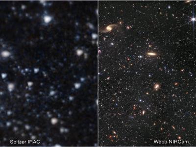 WLM星系一部分的两张照片,一张由美国国家航空航天局的哈勃太空望远镜拍摄(左),...