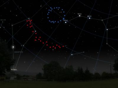 一幅艺术家的插图,描绘了牧人博特斯星座北部附近的大环和大弧。(图片鸣谢:Stellar...