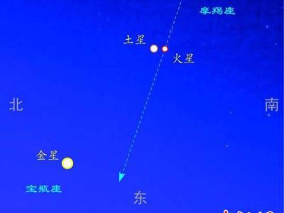 4月5日,火星会合土星示意图。李德生 绘制 摄4月5日,地球、火星、土星排成近似直线...