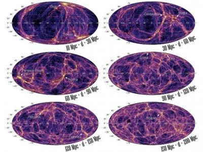 SIBELIUS-DARK模拟的图片在模拟的最中心是银河系(MW)和我们最近的大质量邻居,仙...