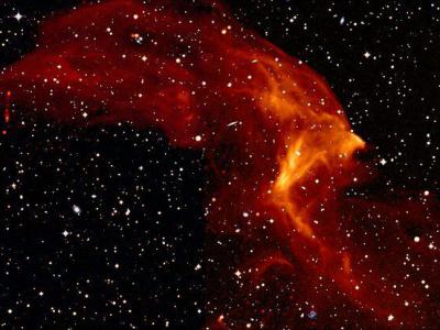 宇宙冲击波是星系团碰撞时产生的。这张照片显示了在Abell 3667星系团中观测到的两种...
