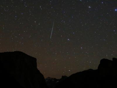 2023年12月14日,美国加利福尼亚州约塞米蒂国家公园隧道景的双子座流星雨和观星图。...