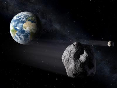 一位艺术家绘制的小行星在地球附近飞驰的插图。(图片来源:ESA-P.Carril)(蜘蛛网...