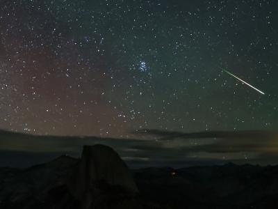 2024年8月12日,明亮的英仙座流星在加利福尼亚州约塞米蒂国家公园的冰川点被捕捉到...