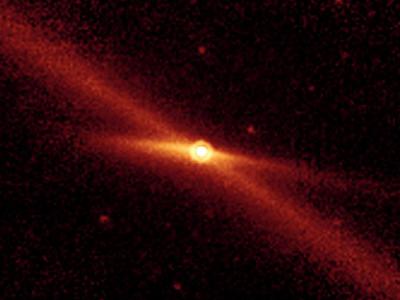 这张由美国国家航空航天局斯皮策太空望远镜拍摄的照片显示,恩克彗星沿着其鹅卵石般...