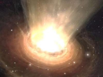 一幅插图显示了从超大质量黑洞驱动的类星体中流出的强风。(图片来源:ESO/M.Kornm...