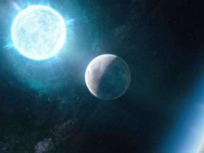 一位艺术家绘制的地球和月球绕白矮星运行的插图。(图片来源:Giuseppe Parisi)(...