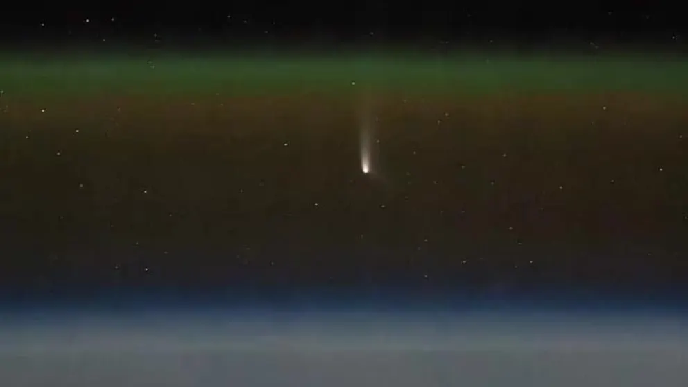 宇航员从国际空间站捕捉到Tsuchinshan-ATLAS彗星的惊人图像(图像:NASA / Matthew...