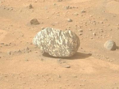 美国国家航空航天局的火星毅力号探测器使用其左Mastcam-Z相机拍摄了这张黑白条纹岩...