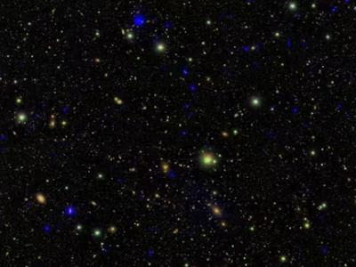 这张巡天图像中的大多数蓝色点都在吸积发射强X射线的超大质量黑洞。(图片来源:Fa...