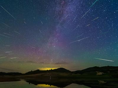2023年8月14日,中国内蒙古赤峰市乌兰布姆草原上空可见英仙座流星雨。(图片来源:...