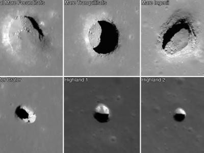 这些来自美国国家航空航天局LRO航天器的图像显示了月球上探测到的一系列坑。每张图...