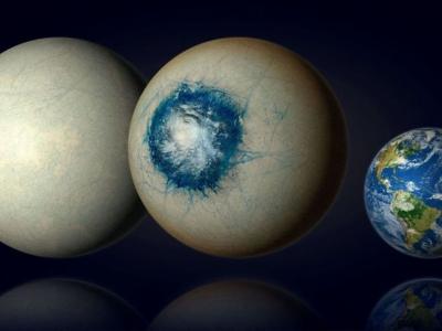系外行星LHS 1140 b可能完全被冰覆盖(左),也可能是一个有液态亚恒星海洋和多云大...