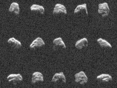 一张双星小行星的宇宙飞船照片。天文学家最近在一颗巨大的小行星掠过地球时发现了一...