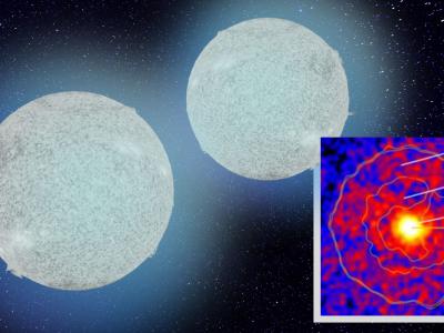 两颗白矮星在合并前的图示(插图)是残余SNR 1181的两个激波区域。(图片来源:Rob...
