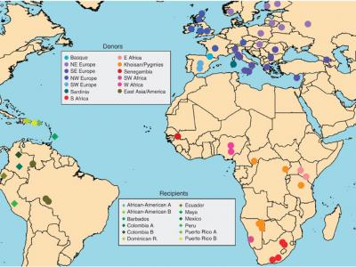 不同的祖先群体的基因对于美洲人口的贡献