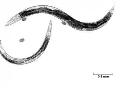 身长仅一毫米的线虫,特别偏爱癌细胞的味道,图为显微镜下的线虫。 日本九州大...