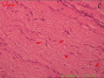 以牵拉神经根的方法制备C6臂丛神经损伤动物模型,造模后即刻用微量注射器接无菌玻...