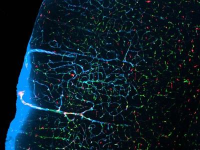 小鼠睡眠期间,神经细胞之间充满液体的通道会扩张,并将垃圾物质清出。 (蜘蛛网...