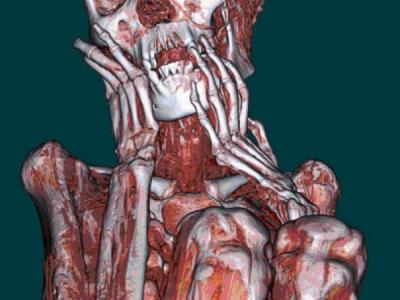 一块哺乳动物头骨化石,牙齿窝里的沉积物,原来是史前蜜蜂筑的巢穴。图片来源:拉萨...