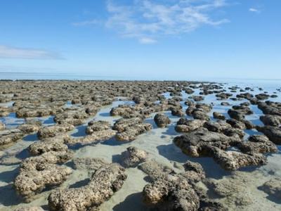 西澳大利亚鲨鱼湾的叠层石可能是30多亿年前最早存活造氧微生物的地点之一 据腾讯...