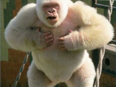 世界上唯一的白化大猩猩——“雪花”存在