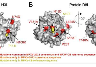 图片显示由牛痘病毒研发而成的疫苗所产生的抗体会攻击两个蛋白例子,2022猴痘病毒并...
