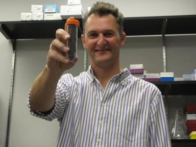 Grogan教授以及他的土壤样品 加拿大女王大学(Queen's University)的生物学教授...
