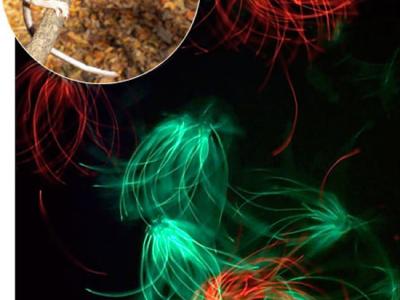 红绿两团精子分别来自于两只雄鹿鼠(小图),从而证明了精子也能够识别亲属。 当...
