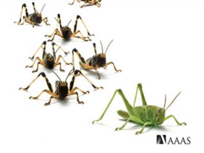 5-羟色胺将蝗虫集结在一起 研究人员已经将沙漠蝗虫的彻底转变(即从无害、独处的...