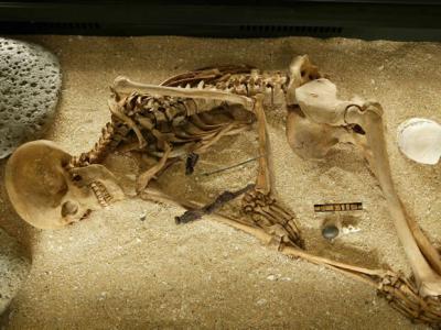 基督教之前(<1000 C.E.)某古代冰岛女性的骨骸。(蜘蛛网...
