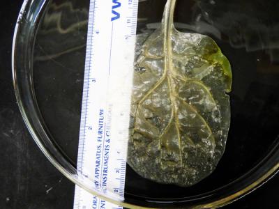 这片经过去细胞处理的未染色菠菜叶片,将用来测试植...