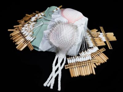 Algorithmic Lace bra采用古编织技艺制成。Algorithmic Lace bra造型独特。(蜘蛛网...