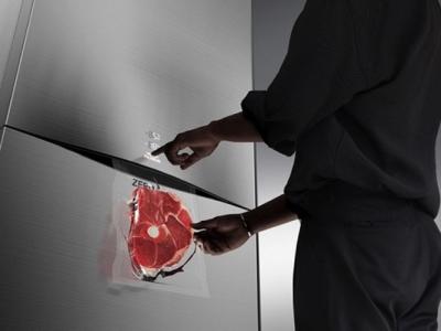 Zero是个概念家用双门智能冰箱。冰箱内有包装机,能自动将食物...