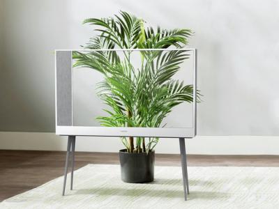 “Bild X”概念OLED电视机薄如镜。将电视放在座枱底座时,造型...