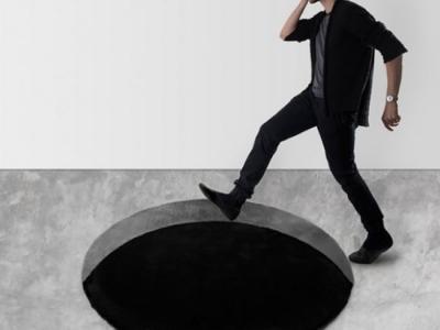 地板上看似出现一个无底洞。长方形设计地毯可用于走...