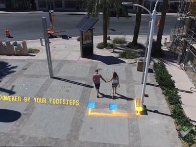 广场地面经过特别设计,将路人步行产生的动能转化为电能。 太阳能板可以吸收光...