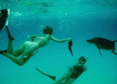 潜水员手臂上放置一种CHAT水下翻译机,可通过水下扬声器发出声音,让海豚知道哪种...
